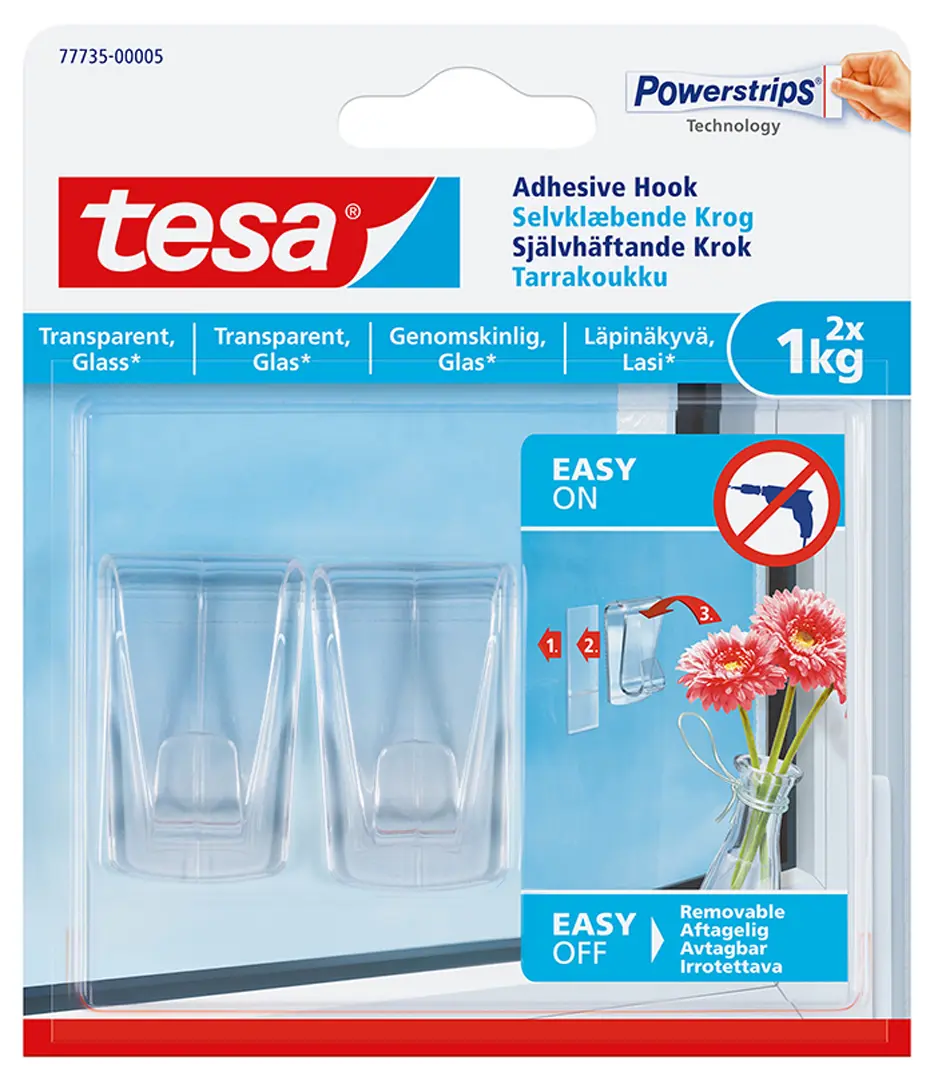 - Krókur límdur Tesa glærir 2 x1kg glærir í pakka
