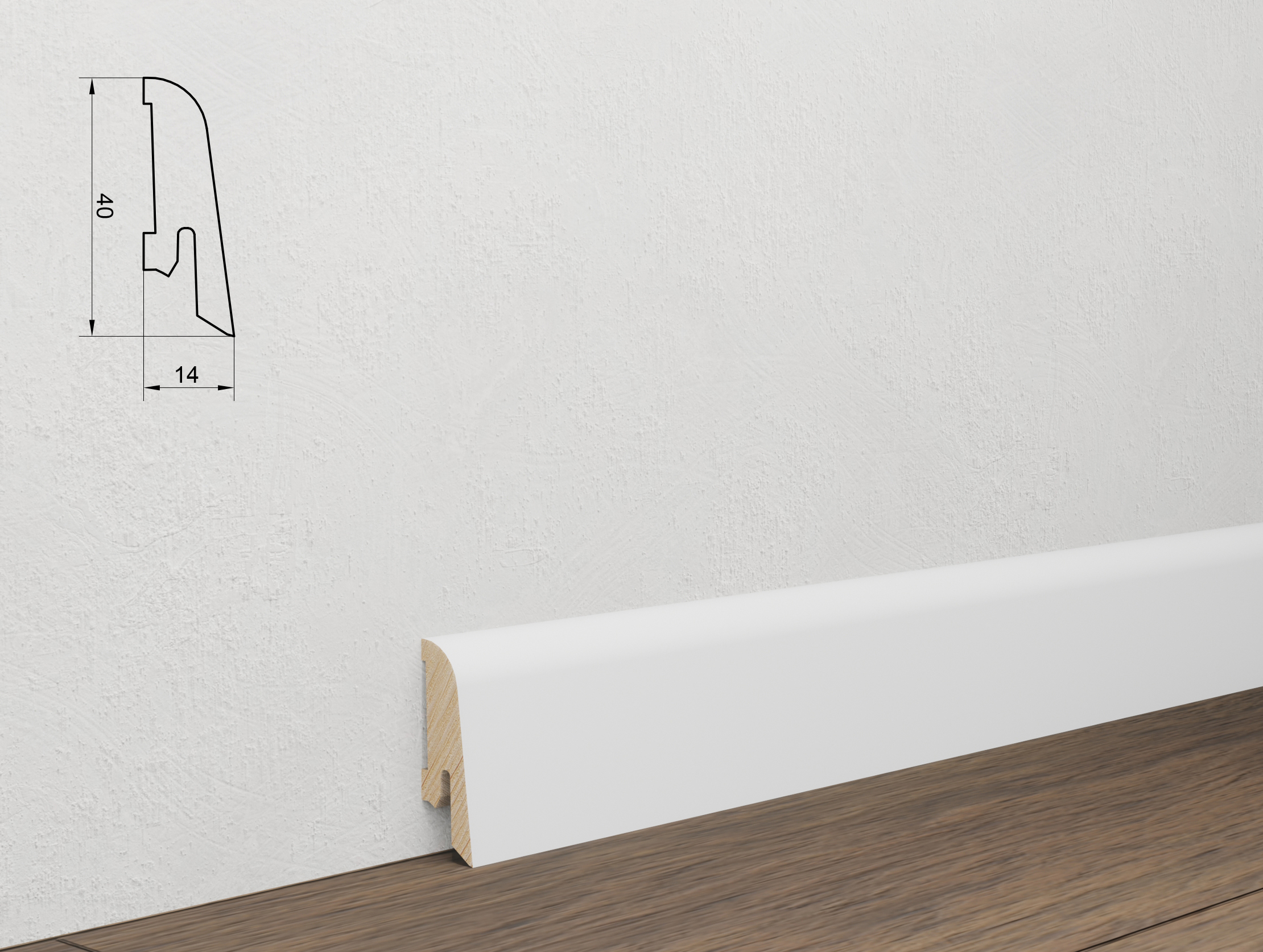 Parketlisti Eik Hvít 14x40x3000 mm