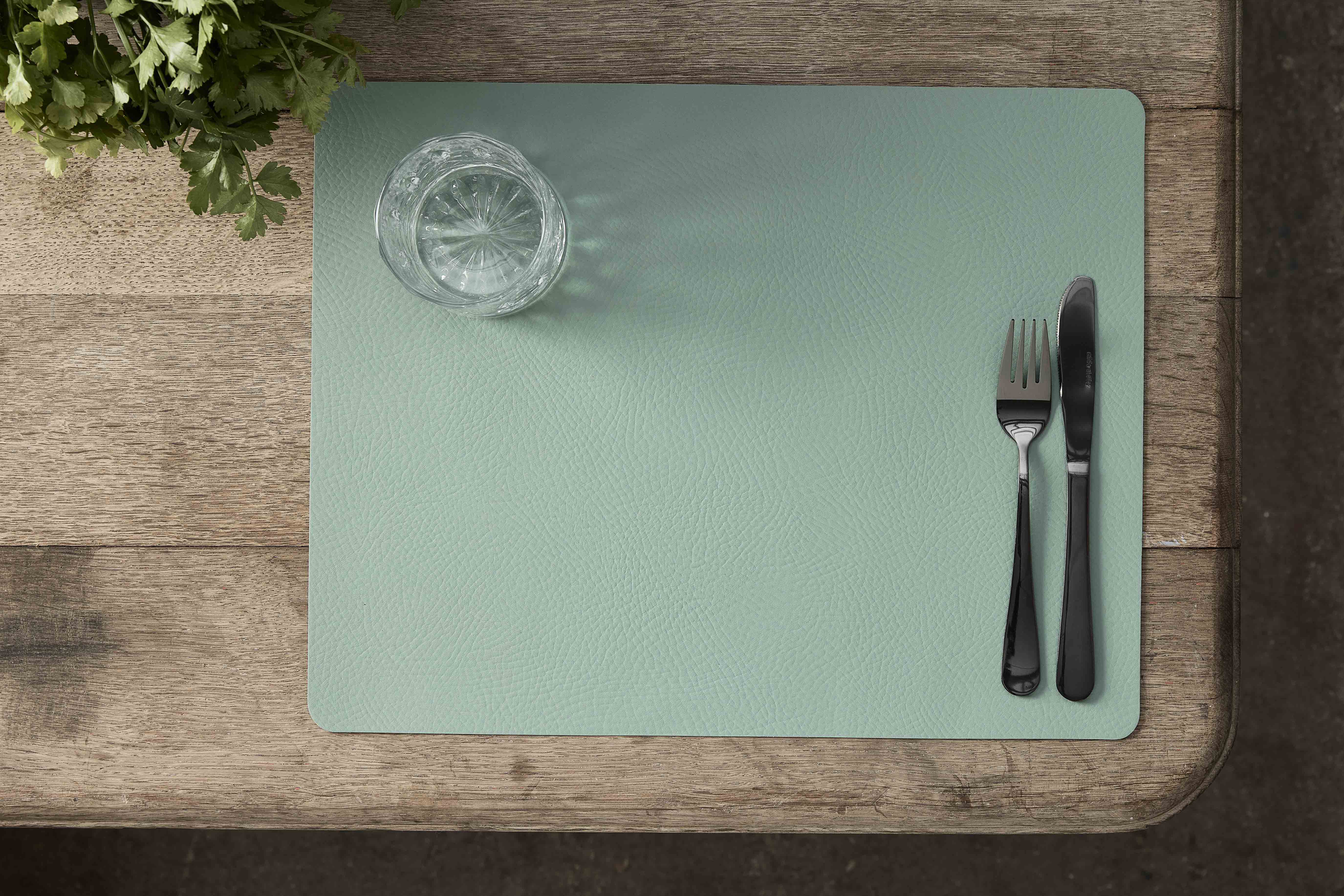 Úr 95% endurunnu leðri. Svört á hinni hliðinni. Hreinsið með rökum klút.