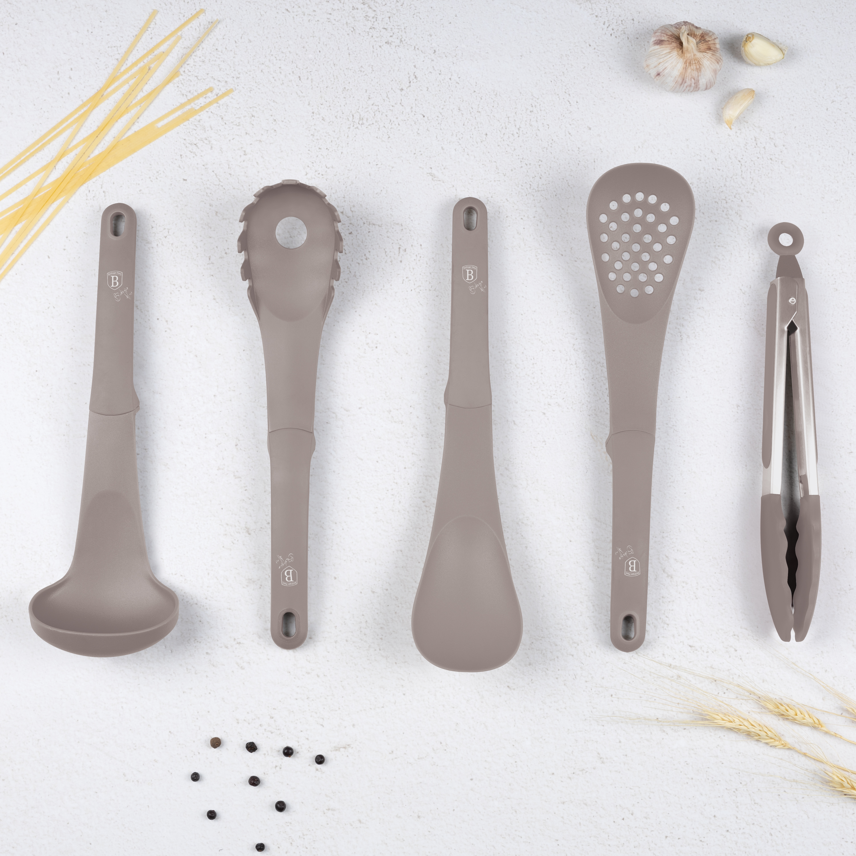 Matartöng, súpuausa, spaghettiskeið, eldunarskeið, gataspaði.