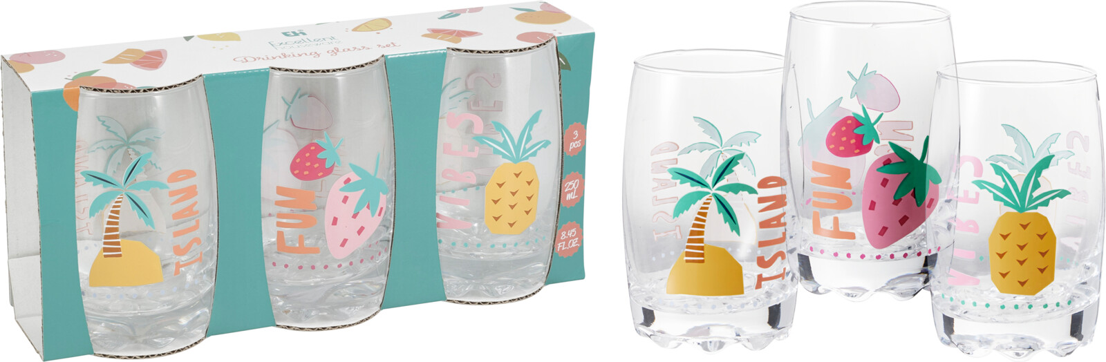 - Drykkjarglös 3 stk, 250 ml