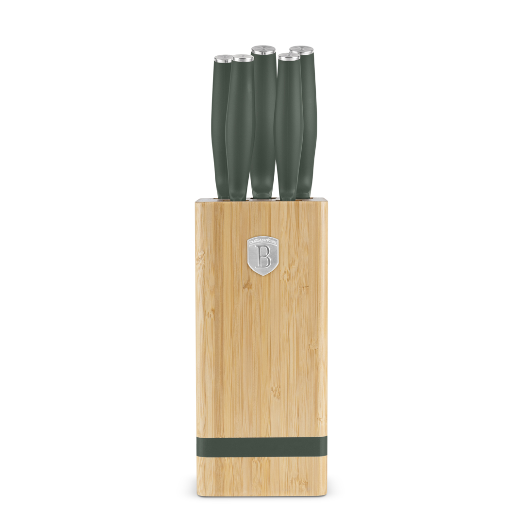 Hnífasett í bambusstandi matt/grænt 6 stk