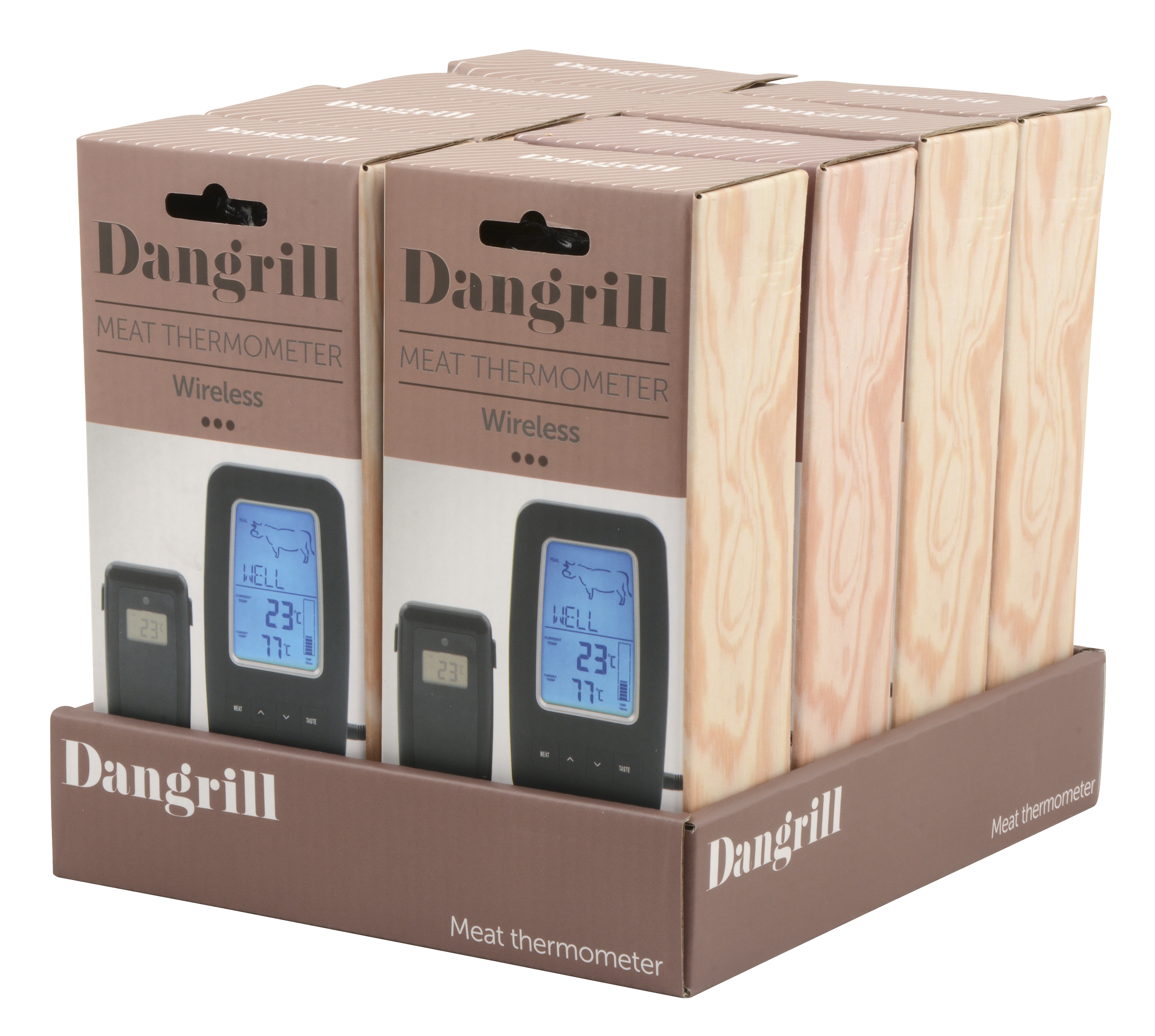 Hitamælirinn er búinn segli og fjölmörgum forstilltum aðgerðum sem tryggja að rétt hitastig sé valið fyrir hverja tegund kjöts og lætur þig vita þegar æskilegum hita er náð. Skjárinn lýsist upp með bláu ljósi meðan á notkun stendur.