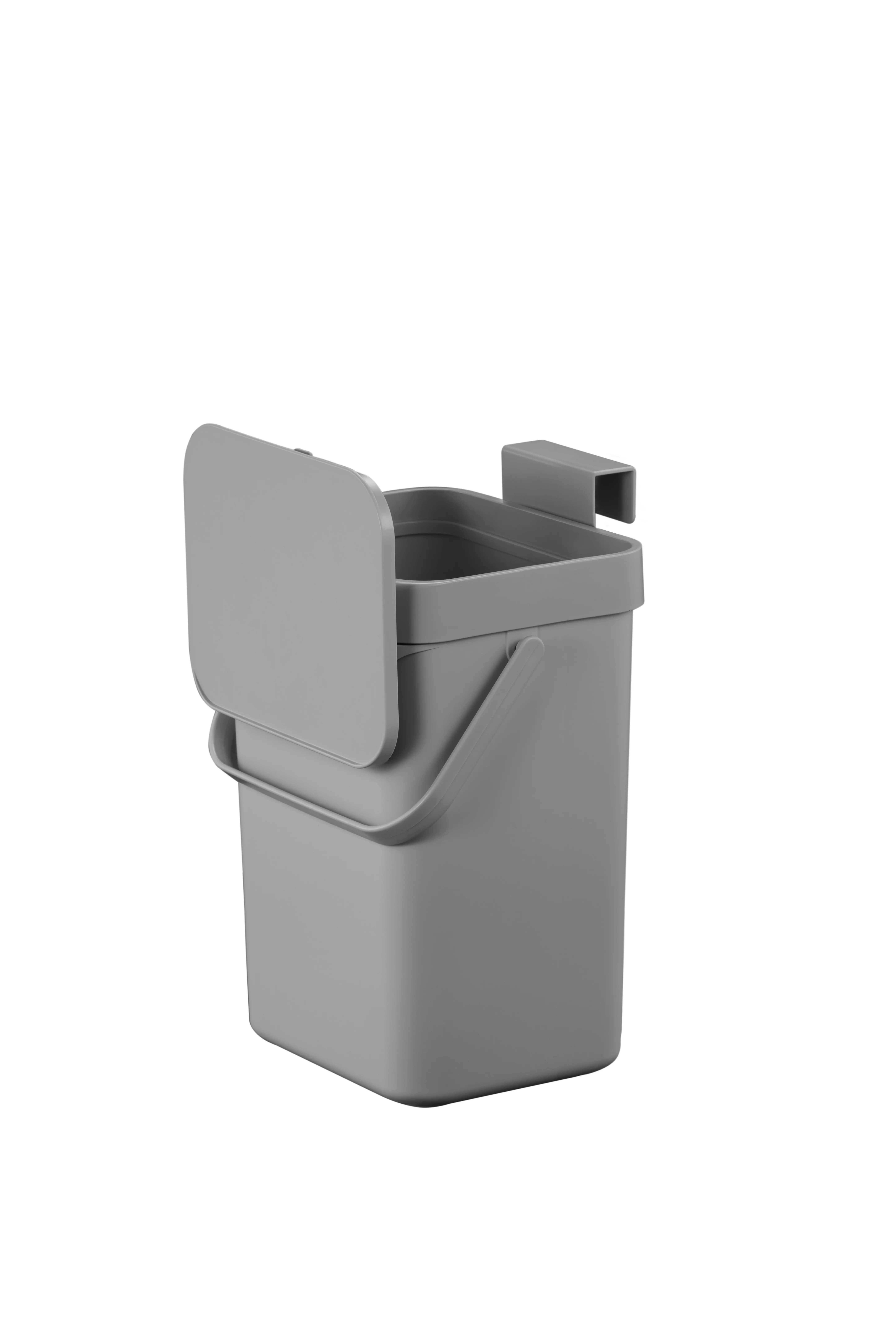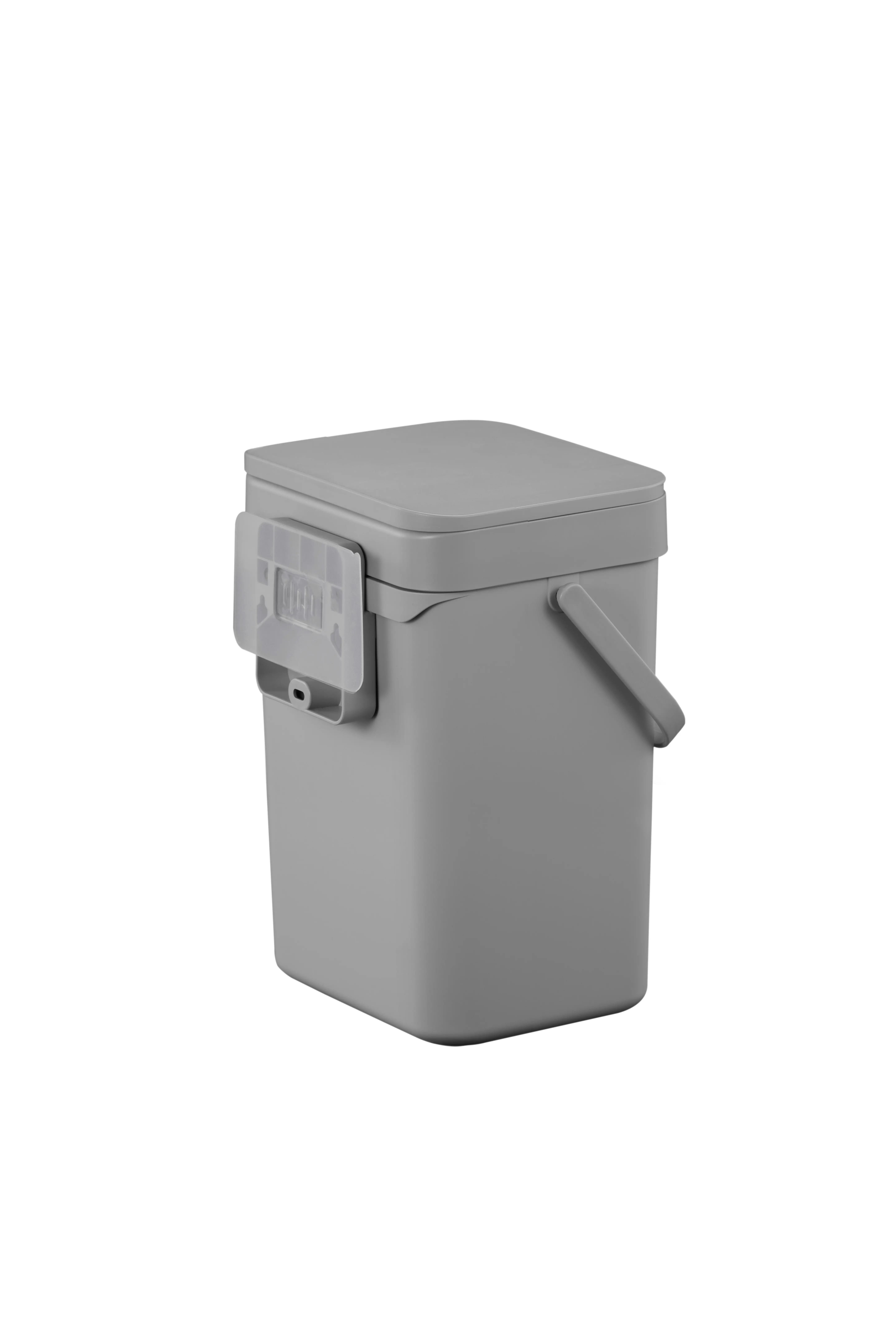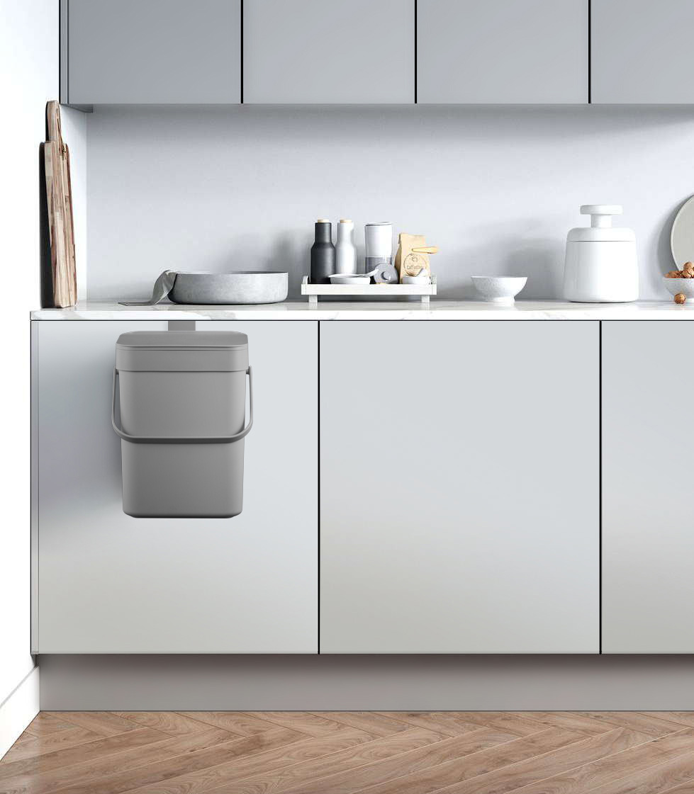Þétt sorpílát úr plasti fyrir lífrænan úrgang. Er með handhægu handfangi. Tvær leiðir til að opna lokið. Auðvelt að hengja á eldhússkápshurð, festa á vegg eða sett á borð. Ílátið er með lausan ramma sem auðeldar að losa poka með lífrænum úrgangi.