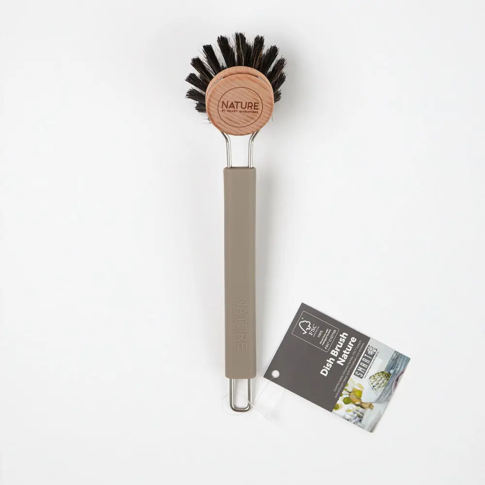 Handhægur silikonuppþvottabursti með hrosshárum.