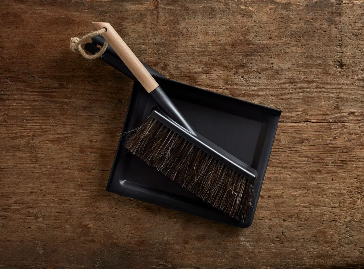 Sópur með fægiskúffu svartur