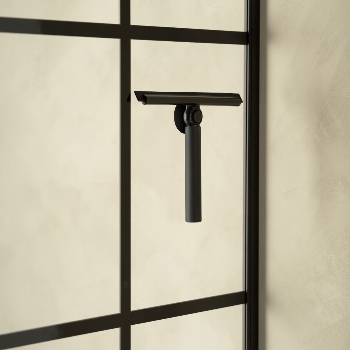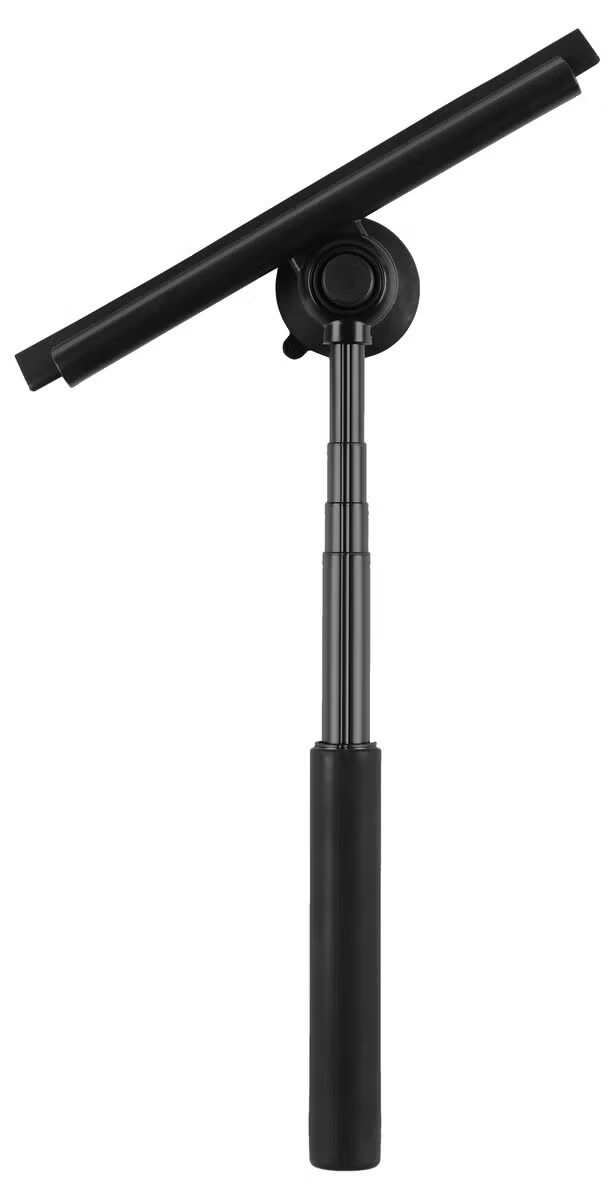 Snilldarlega hönnuð sturtuskafa með lengjanlegu skafti og statívi. Hægt að festa á sturtugler. 23 - 84 sm að lengd. Sílikon blað. Smart Microfiber