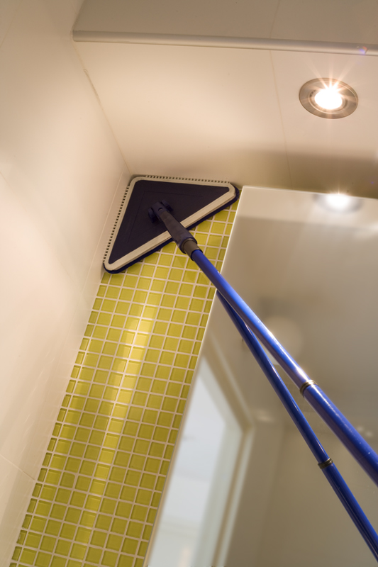 Hægt að sveigja moppuna til að ná í horn og á erfiða fleti.