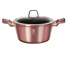 Títanhúðaður álpottur með loki 20 sm. 3ja laga Non-Stick marble húð, kemur í veg fyrir að matur festist. Mjúkt handfang. Falleg hönnun. Pottahlíf fylgir.