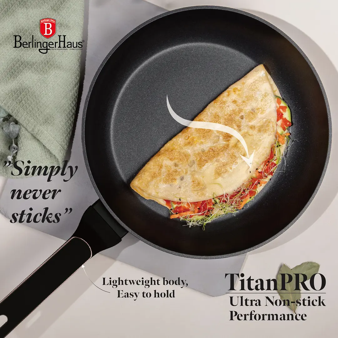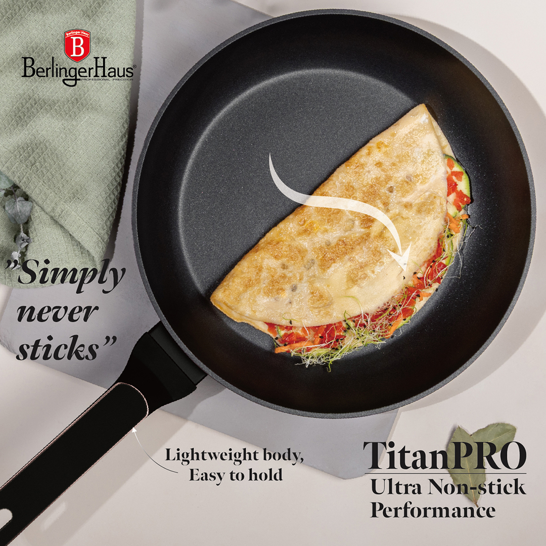 Steikingarpanna 28 sm. 28*5,2 sm, 2,4 l. Þreföld endingargóð títan non-stick húðun. Mjúkt handfang. PFOA,- blý og Kadmíum frítt. Hentar á allar gerðir helluborða. Auðvelt að þrífa.