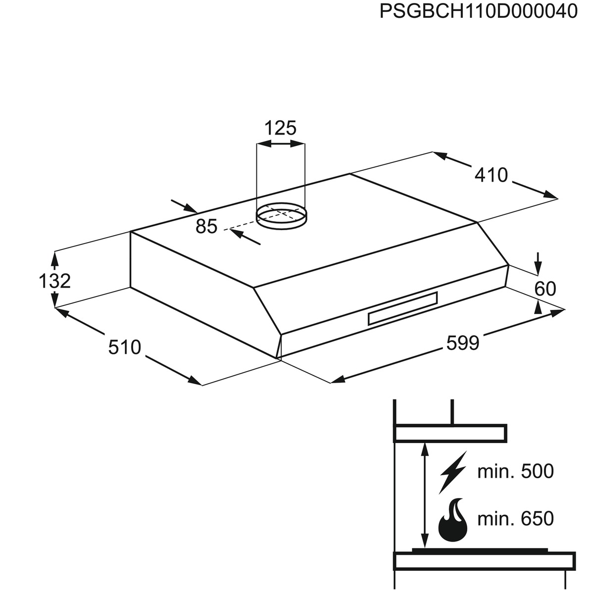 - Vifta Electrolux EFU216W 60cm hvít