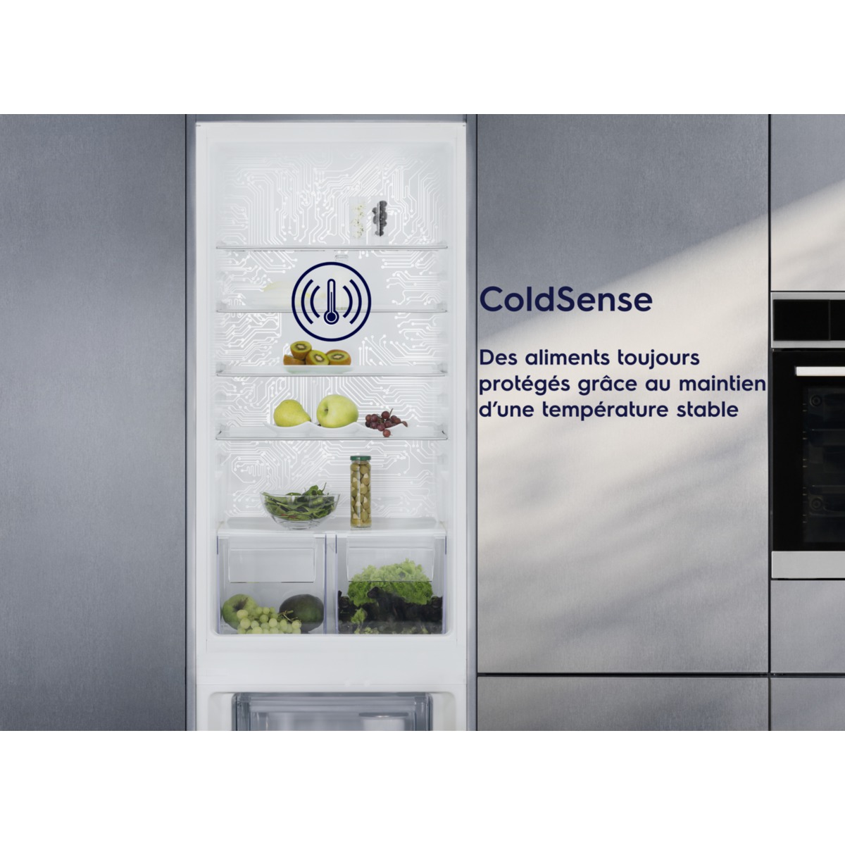 Eiginleikar 600 FLEX SERIES 1 hurða ísskápur Innbyggð mál: 1780 mm DynamicAir tækni Rafræn stafræn hitastýring LongFresh skúffa 0 ° C Innri LED lýsing Orlofsaðgerð fyrir meiri orkusparnað : 1 Mjólk , með loki Eggjahólf: 2 fyrir 6 egg 3 hillur, málmáferð 1 rennandi hálfar svalir 1 gegnsær flöskuhaldari 3 hillur og 1 tvöföld útdraganleg, plastlögð 1 stór bakka fyrir grænmeti á teinum Grænmetisskúffu(r) með rakastýringu Hljóðeinangrun / sjónræn viðvörun um opnun hurða Sjálfvirk afísing kæliskáps Öryggi barna Afturkræf hurð(ir) hægra megin. Alltaf ferskt með DynamicAir DynamicAir tryggir að innan í ísskápnum haldist jafnt hitastig. Dreifir köldu lofti um alla einingu. Þannig að jafnvel þegar hurðin er opin er maturinn þinn varinn gegn upphitun. Áreynslulaus stjórn með snertinæmishnöppum. Skynjaratakkarnir gera þér kleift að nálgast stillingar og aðgerðir kæliskápsins auðveldlega, til að stilla hitastigið að þínum þörfum. Ítarlegt skipulag. Með ExtraZone Aðskiljið matvælaflokkana með ExtraZone skúffunni. Að halda skipulagi og hafa alltaf hráefnið sem þú þarft við höndina. Rakastýring fyrir grænt og ferskt grænmeti Njóttu dýrindis grænmetis með rakastýringarílátinu okkar. Hið síðarnefnda skapar besta umhverfið til að geyma matvæli. Með því að loka loftopunum skapast kjörið rými til að geyma ilmandi kryddjurtir og grænt laufgrænmeti. Lyktarlaus ísskápur, þökk sé CleanAir síu Njóttu ísskáps sem lyktar ferskt þökk sé CleanAir síu. Sían okkar notar kol til að hlutleysa sterka lykt og vernda náttúrulega bragðið af innihaldsefnum þínum.