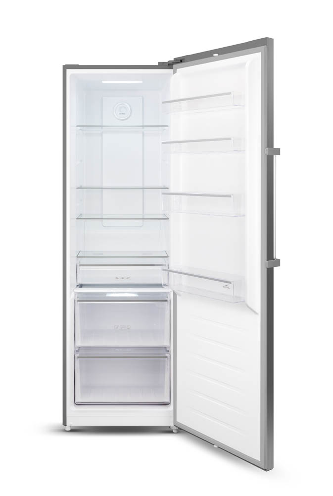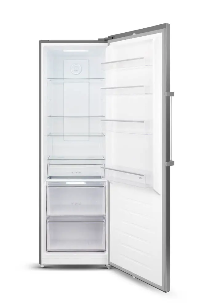 FERSK svæði fyrir kjöt og fisk Glæsileg snertistjórnun með LED skjá Heildarrúmmál kælis: 359 L Öryggisglerhillur Gegnsæjar skúffur Gegnsæir hurðarbakkar Handfang sem auðvelt er að opna Hæðarstillanlegir fætur Möguleiki á að skipta um hurðaropnunarhlið Innri LED ljós Orkuflokkur E Loftslagsflokkur: SN, N, ST Hávaði: 40 dB Orkunotkun: 118 kWh/ári Vörumál (HxBxD): 185 x 60 x 65 cm, mál með handfangi eru 185 x 60 x 70 cm (HxBxD) Litur: Inox Sjálfvirk afþíðing já Stjörnuheiti frystihólf - Loftslagsflokkur ST Loftslagsflokkur N Loftslagsflokkur SN Frystigeta 0 kg/24 klst Núllsvæði (0-3°C) nr Orkunotkun 0,32 kWst