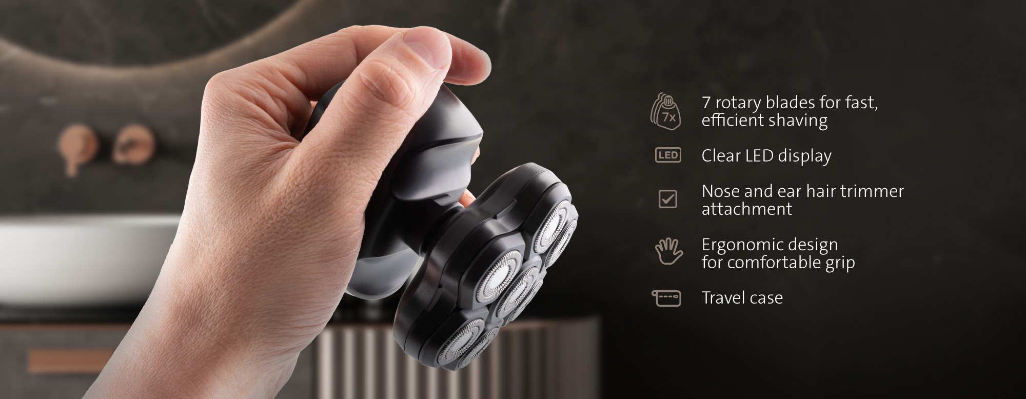 Þessi vél er þó ekki eingöngu fyrir höfuðið því henni fylgja nytsamlegir aukahlutir sem breyta henni í fjölnota snyrtitæki. Með í pakkanum er sérstakur skeri fyrir nefhár og eyrnahár ásamt bartskera sem hentar vel til að snyrta skegg eða vangahár. Vélin er vatnsvarin (IPX6) sem auðveldar þrif, þar sem hægt er að skola hausinn beint undir vatnsbununni.