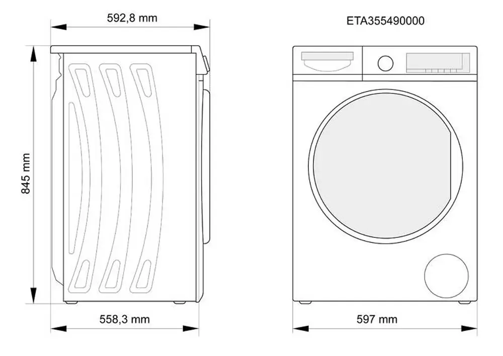 - Stærð (H x B x D): 845 x 597 x 557 mm