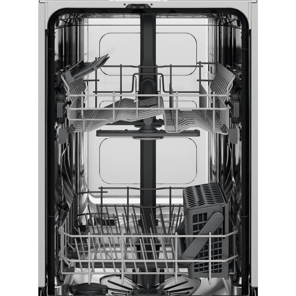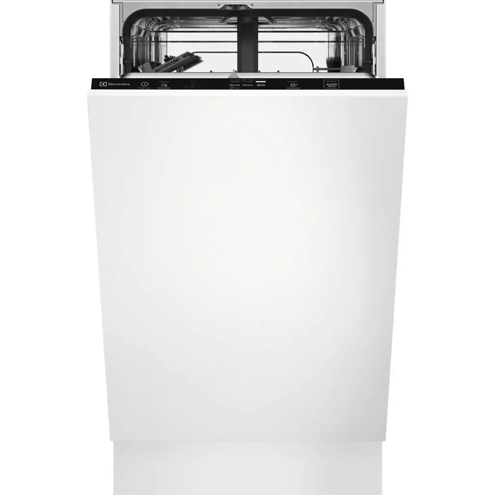 Electrolux KEAD2100L er 45 cm breið, innbyggð uppþvottavél, hönnuð fyrir þá sem þurfa netta en skilvirka vél. Helstu eiginleikar eru: AirDry tækni: Þessi tækni notar náttúrulegt loftstreymi til að þurrka leirtauið betur. Hurð uppþvottavélarinnar opnast sjálfkrafa örlítið í lok hvers þvottakerfis, sem leyfir lofti að streyma inn og þurrka leirtauið. PerfectFit rennihjörur: Auðveldar uppsetningu með því að leyfa stillingar fyrir mismunandi skápahæðir, sem útilokar þörfina á að klippa sökkul. Býður upp á margvísleg þvottakerfi, þar á meðal AutoSense, Eco og 30 mínútna hraðþvott. Hönnuð til að þrífa 9 sett af leirtaui. Snertistjórnborð. Stillanleg efri karfa. Vísbendingar um salt og gljábaði. Lekavörn