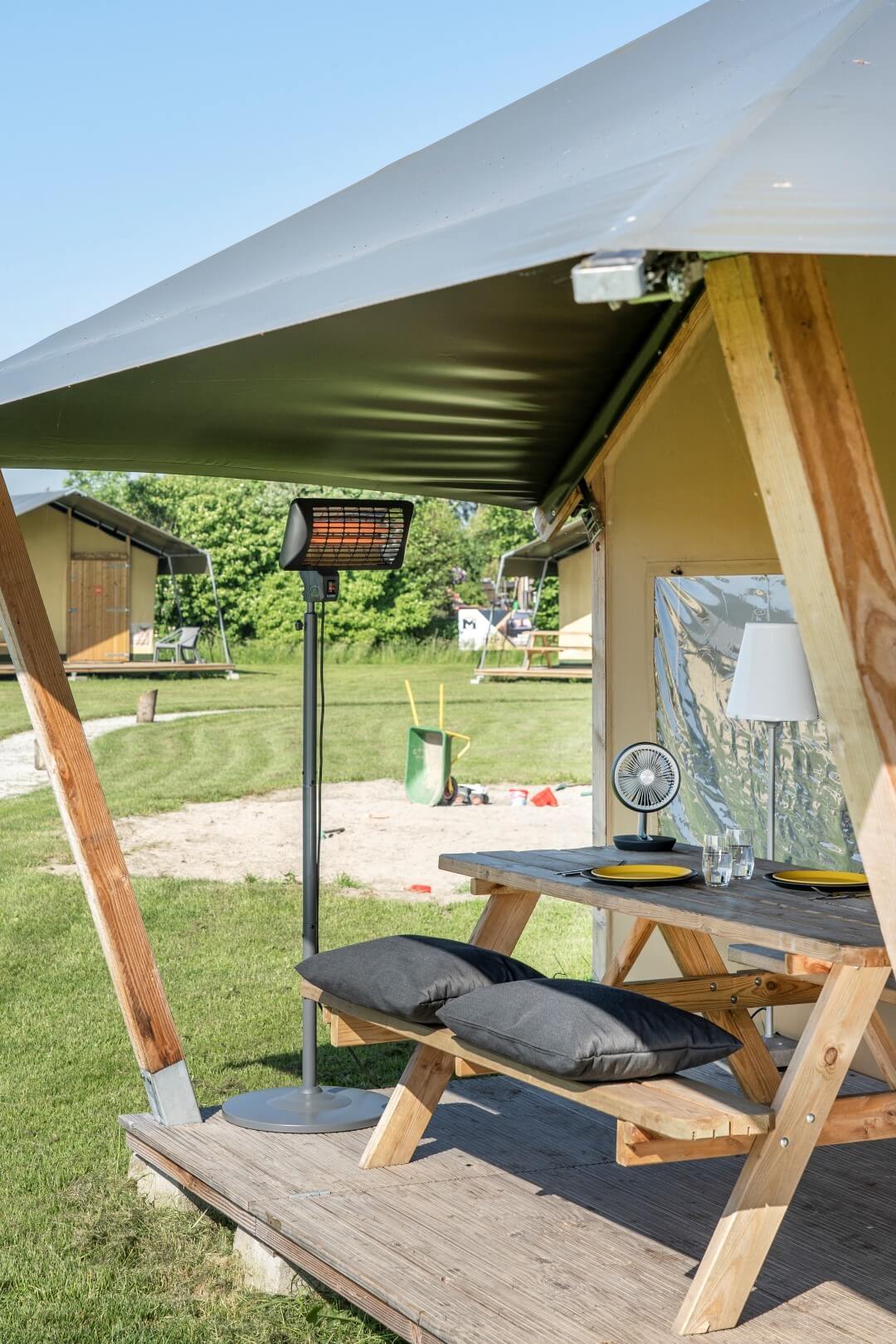 Drægni (hámark) 10 – 15 m². Vottaður IP24 (skvettuvarinn). Lampi kvars. Uppsetning standandi, veggur. Hlíf úr málmi. Tengispenna 220-240/50 V/Hz Kraftur : 2000 W Aflval : 2 Mál : 47 x 50 x 202 cm Rafmagnskapall : 180 cm Þyngd :9,5 kg Veröndarhitarar taka oftast mikinn startstraum . Þetta þýðir að þegar kveikt er á þeim nota þeir meira afl í upphafi en ella. Þessi hái startstraumur er raun margra raftækja við gangsetningu, en þegar sjálfvarið í töflunni getur ekki veitt svona mikinn straum verður útsláttur. Til að koma í veg fyrir útslátt er mikilvægt að tengja ekki önnur rafmagnstæki við sömu grein. Viltu samt tengja veröndarhitarann þinn á þessum tiltekna stað? Hafðu samband við rafvirkja sem getur tengt við þá töflugrein sem þolir meiri straum.
