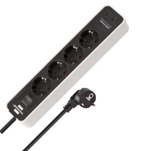 FJÖLTENGI 4F HVÍTT 1,5M M/ROFA ECOLOR 2xUSB-C, H05VV-F 3G1,5
