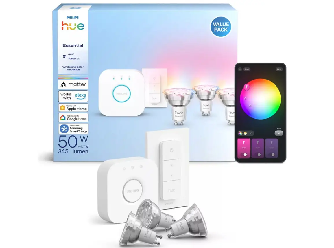 Hue Essential 50W RGBW GU10 345lm 4,7W Startsett 3x + Rofi