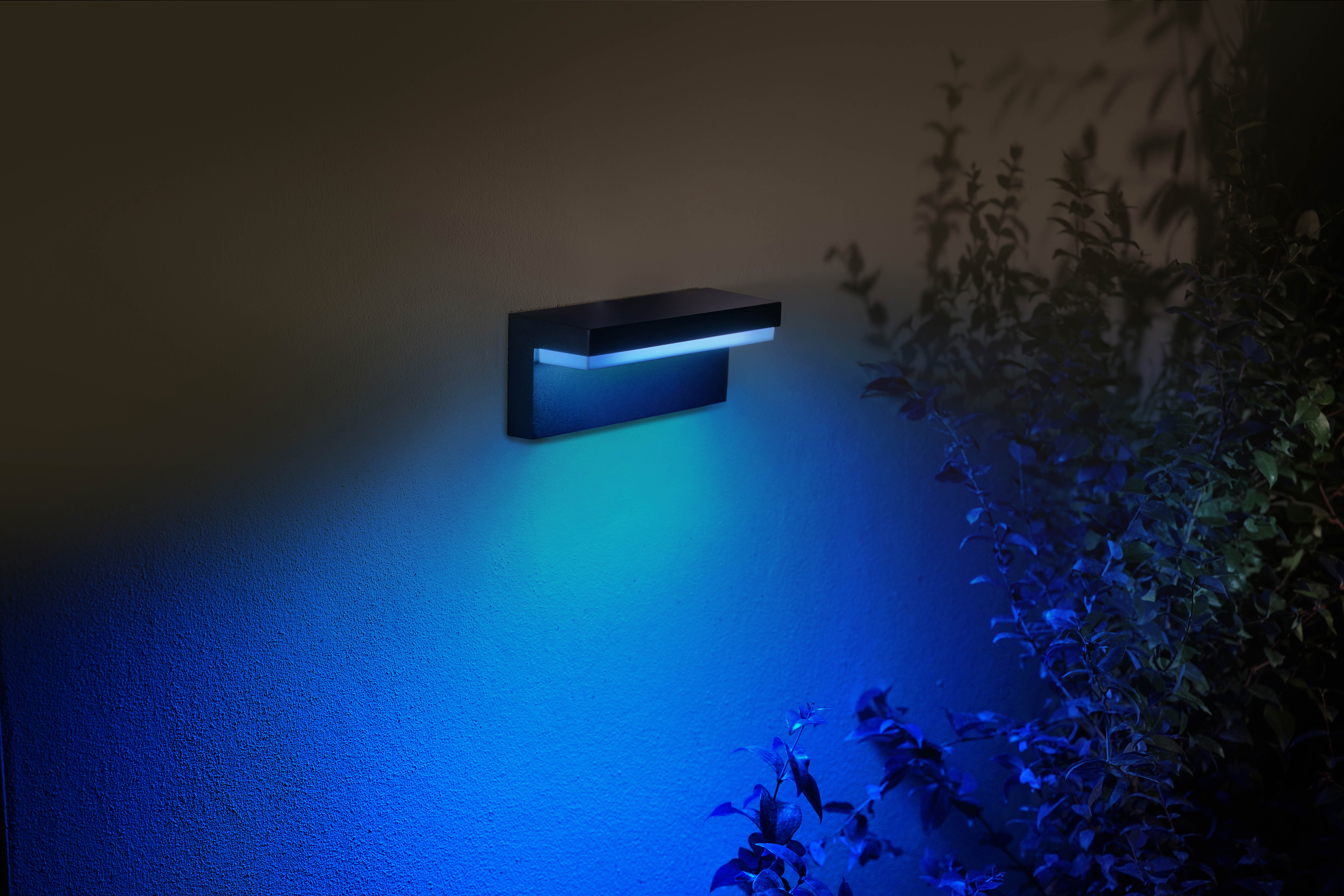 Fallegur og stílhreinn vegglampi með 16 milljón litum + venjulegu hvítu ljósi til notkunar utandyra. 16 milljónir litir gefa þér tækifæri til að fá nákvæmlega þá birtu sem þú vilt úti í garðinum og hægt er að stjórna því í gegnum snjallsímann þinn, sem þarf þó Hue brú.
