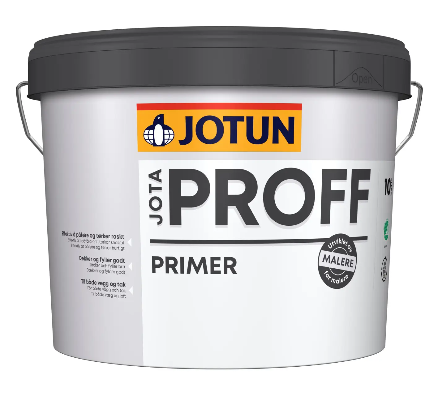 Jotaproff Primer frá Jotun er sérhæfður vatnsþynnanlegur grunnur hannaður fyrir fagaðila á veggi og loft innanhúss. Grunnurinn er hannaður til að metta og jafna áferð í gljúpum undirlögum eins og gifsplötum, steypu, múr og sprautuspartli, sem tryggir að lokamálunin verði jöfn og laus við flekki eða misjöfn gljástig.