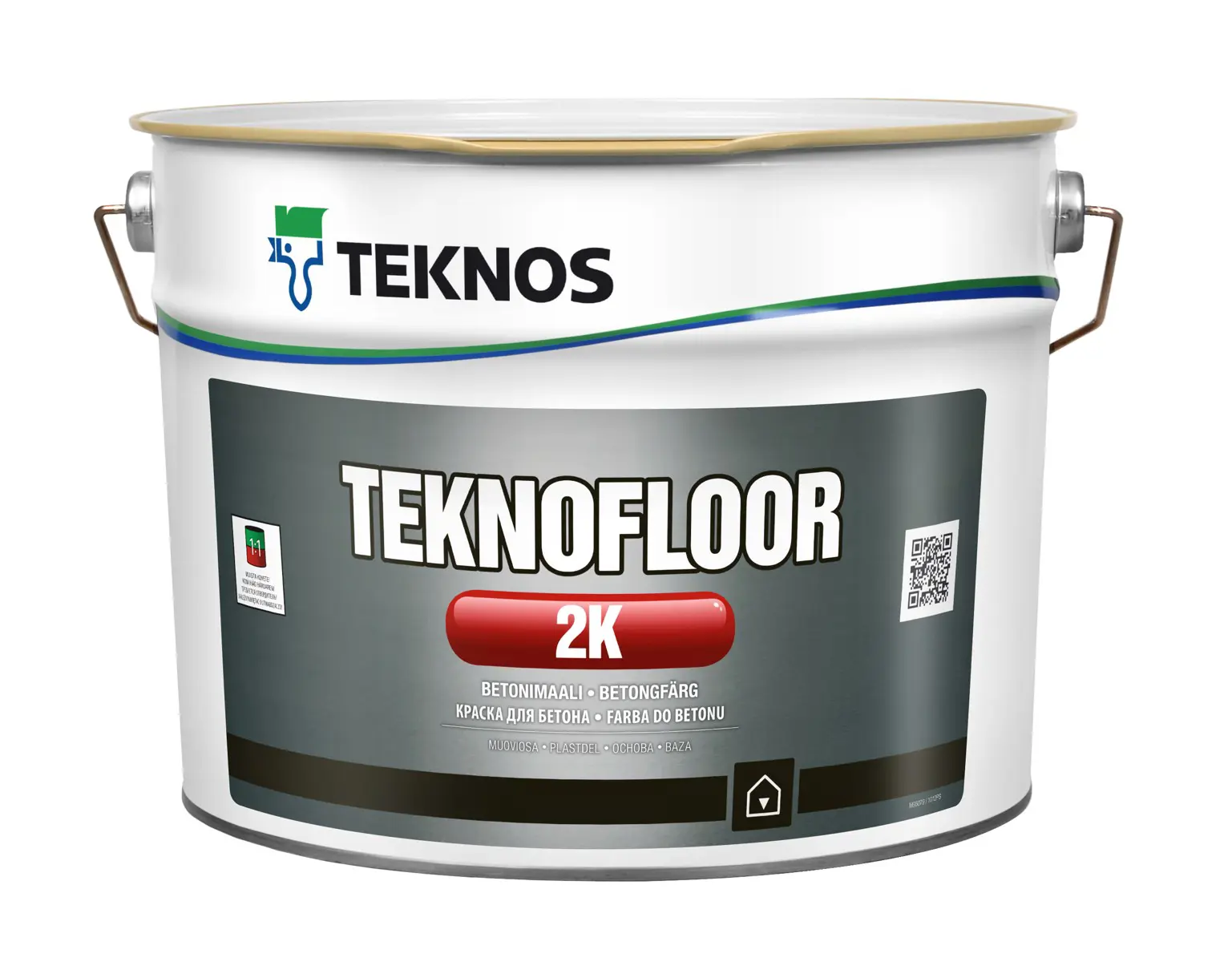 TEKNOFLOOR 2K er málning fyrir steypt gólf. Önnur notkunarsvæði eru veggir við rakar aðstæður og iðnaðarsvæði, þ.e yfirborð sem krefst endingargóðrar, þéttrar og auðvelt að þrífa húðun. Málninguna er einnig hægt að bera á sementsgifs, múrsteina og harðar byggingarplötur. Dæmi um notkun eru gufuböð, þvottaherbergi, kjallarar osfrv. TEKNOFLOOR 2K hefur gott slitþol. Það þolir vatn, bensín, olíu, fitu, jafnvel sterkar lútlausnir, leysiefnaslettur og tímabundna snertingu veikra sýra. Það skilar hvorki bragði né lykt í matvæli og þornar fljótt og því er hægt að bera bæði grunnun og topphúð á á sama virka degi. TEKNOFLOOR 2K er hentugt til notkunar í matargerðar- og pökkunarumhverfi (Smithers Rapra, skírteinisnúmer GC0069). Vatnsgufugegndræpi TEKNOFLOOR 2K steinsteypumálningar uppfyllir kröfur staðalsins EN ISO 7783-1 Class I, sD < 5 m. Föst efni ca. 45% miðað við rúmmál Heildarmassi fastra efna ca. 650 g/l Rokgjarnt lífrænt efnasamband (VOC) ESB VOC viðmiðunarmörk (kat A/j): 140 g/l. VOC vörunnar: hámark. 140 g/l. Notkun, +23°C 1½ klst Blöndunarhlutfall 1:1 miðað við rúmmál (samhljóða A : samhljóða B) Herðir Samgr. B: TEKNOFLOOR 2K KOVETE Glans Glans Litunarkerfi Teknomix Þekja Fer eftir grófleika og gleypni yfirborðsins. Staðlað gildi fyrir stálhúðað yfirborðsmalað steypt gólf: 1. Notkun 4 - 6 m²/l. 2. notkun 7 - 9 m²/l. Þurrkunartími - ryklaust 1 klst Þurrkunartími – passa fyrir létta umferð 4 klst Þurrkunartími - full hersla 7 dagar Þynnir Vatn. Hreinsaðu til Vatn og tilbúið þvottaefni. Þvoðu búnaðinn strax eftir notkun. Litir Grunnur 1, 2 og 3 (hvítir og ógagnsæir litir). Samþykki og vottorð CE merking, M1 flokkun, Smithers Rapra, Finnski lykilfáninn