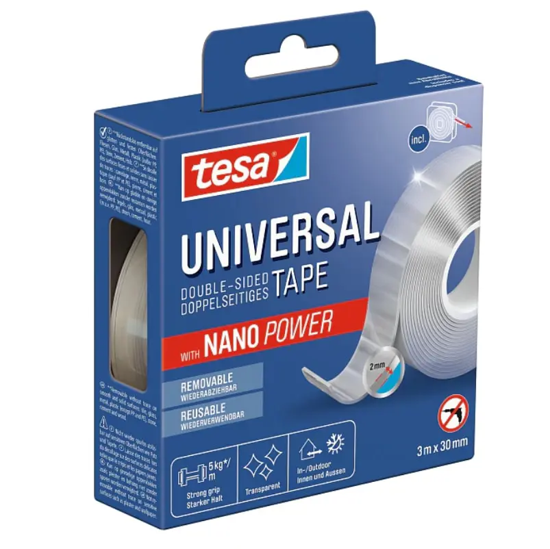 Nano Power tape frá tesa er fjölhæf vara, sem hægt er að nota í mörgum tilgangi. Kemur í statífi, rúlla er 3m x 30mm. Inni og úti notkun.