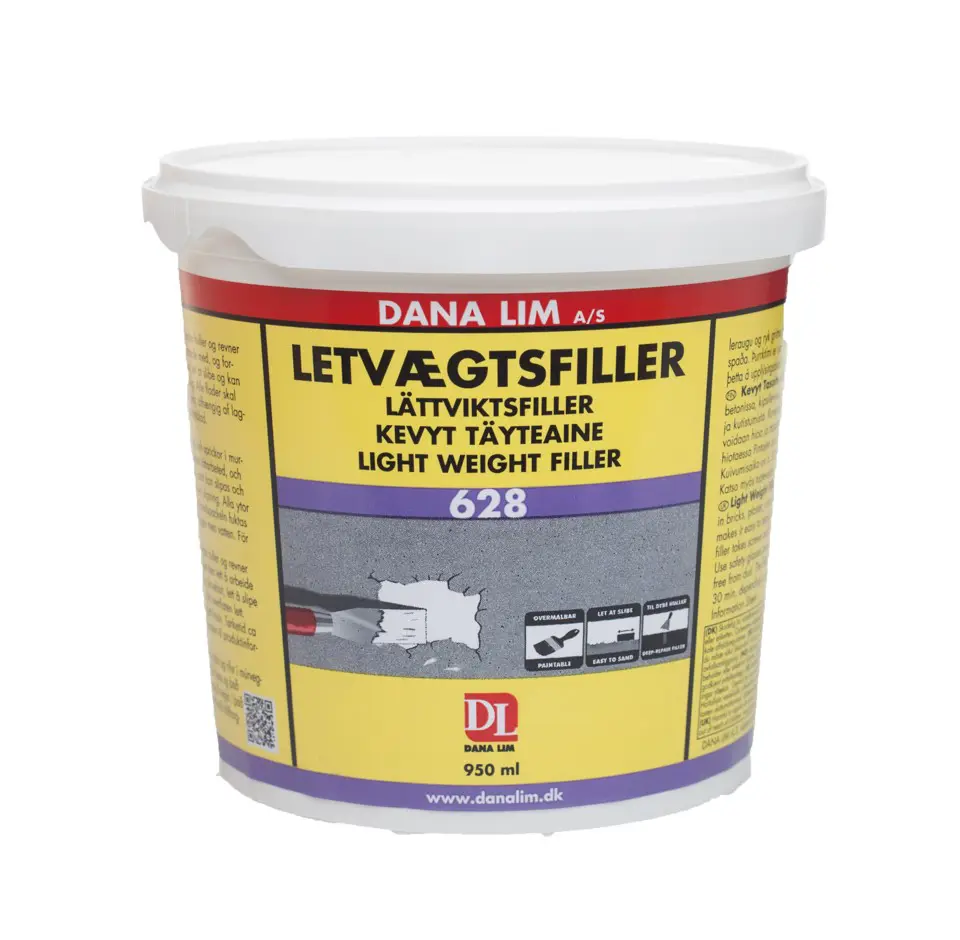 Léttspartl Light 628 er hágæða, tilbúið léttspartl sem er sérstaklega þróað til að fylla fljótt og örugglega í holur og sprungur í loftum og á veggjum. Spartlið hentar á flest algeng byggingarefni innanhúss, svo sem gifs, steypu, múr og tréverk.