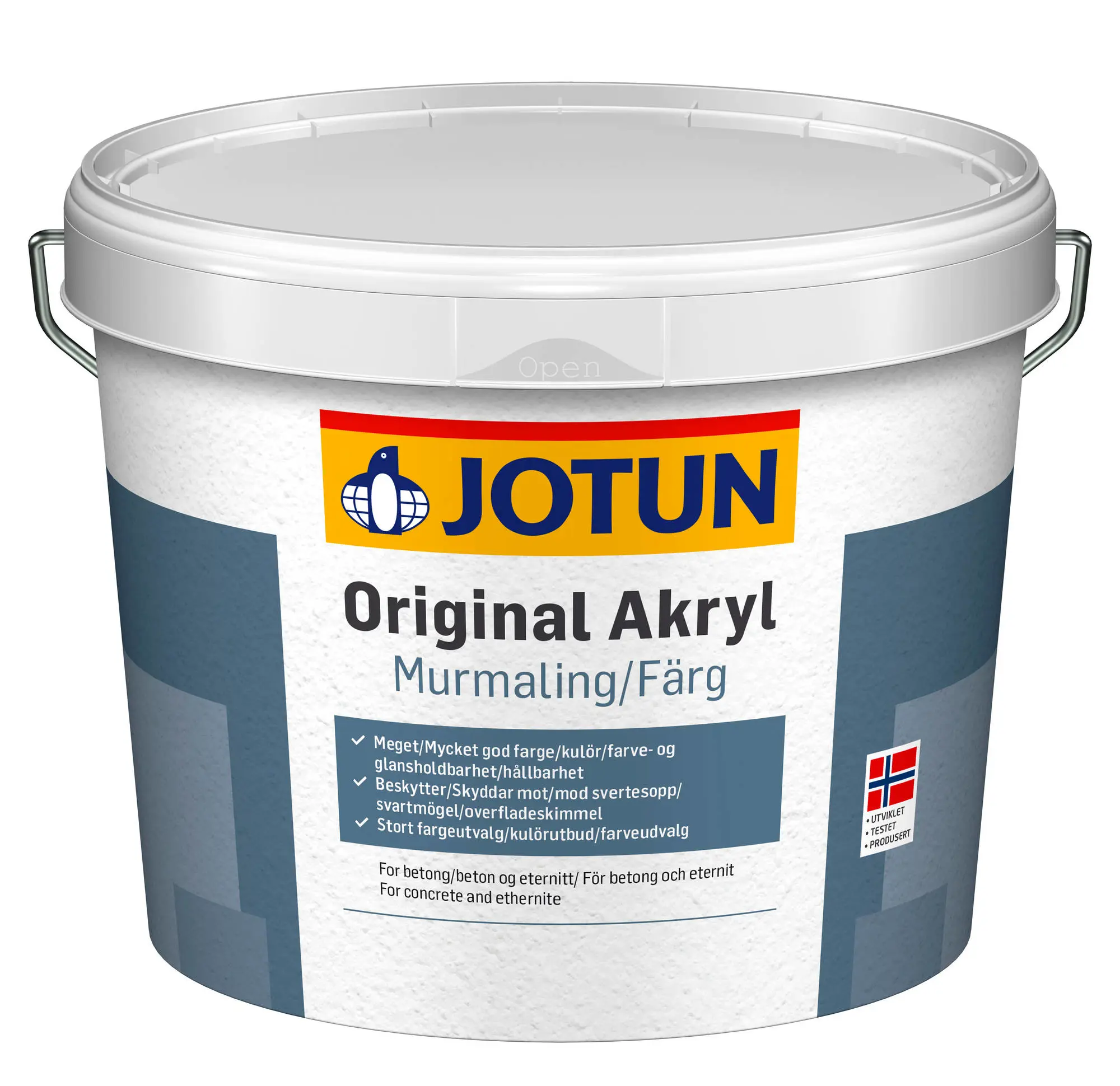 Jotun Original Akryl Murmaling er hágæða akrýlmálning sem hönnuð er til að verja utanhússmúr gegn krefjandi norrænum veðurskilyrðum. Málningin myndar veðurþolna húð sem hrindir frá sér vatni en er jafnframt opin fyrir vatnsgufu, sem lágmarkar hættu á frostskemmdum.