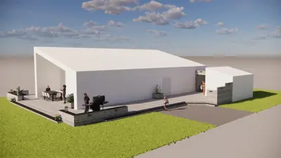 📐 Grunnteikningu af húsi og lóð í mælikvarða 1:100