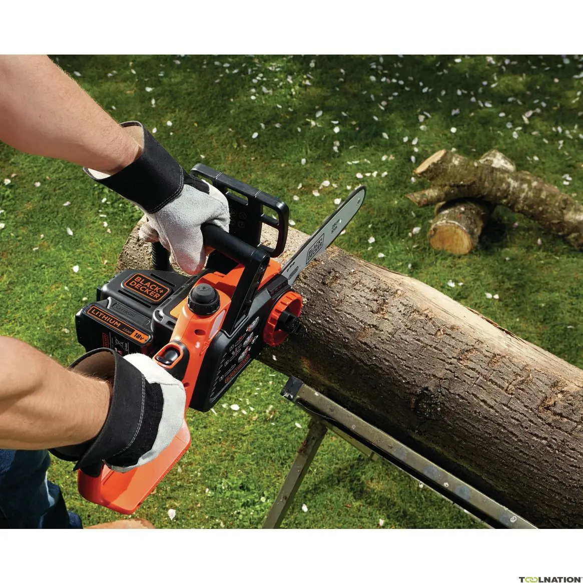 18V rafhlöðuknúin keðjusög með 25 cm sverði, hönnuð fyrir þægilega og skilvirka garðvinnu með allt að 220 skurðum á einni hleðslu.