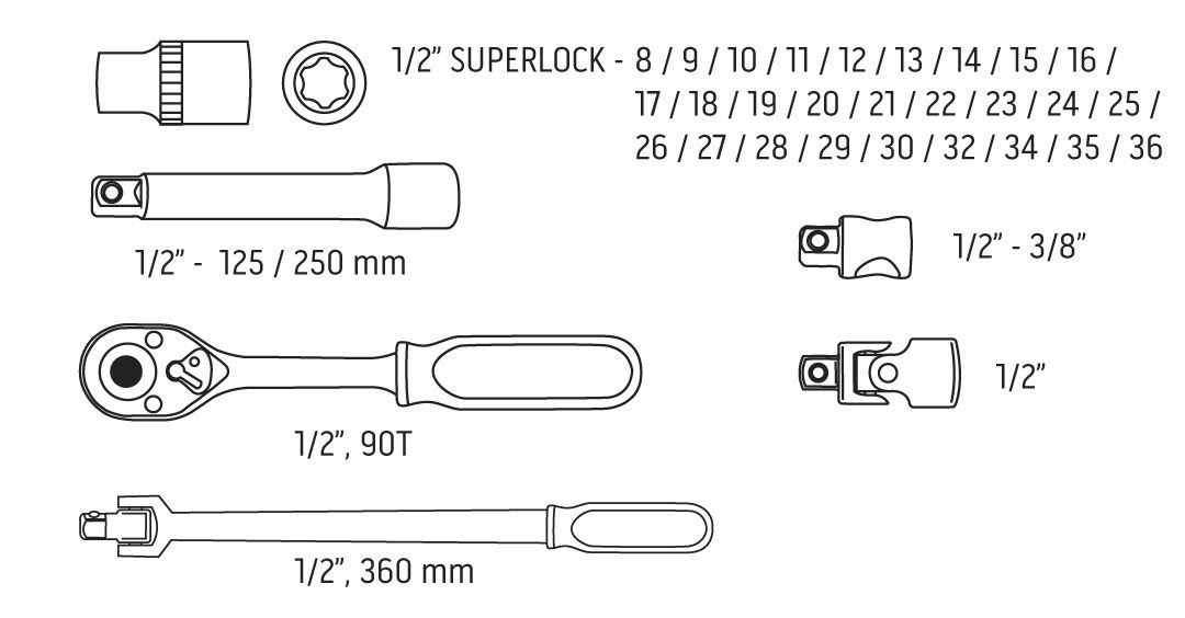 - TOPPLYKLASETT 33STK 1/2" NEO 08-692