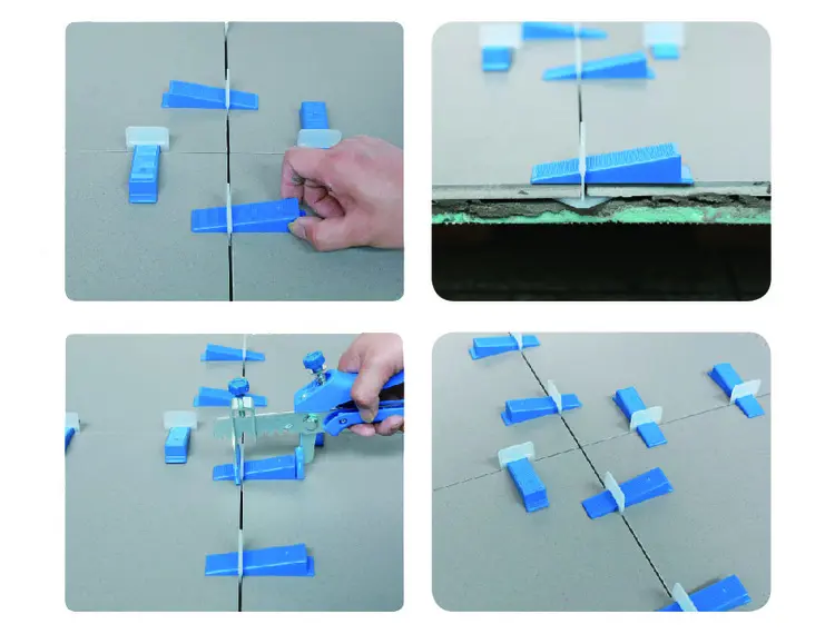 Notað ásamt Bihui fleygum. Fyrir samskeyti 1,5 mm. Fyrir flísar allt að 18 mm þykkar. Klemman er sett undir flísarnar og fleygurinn settur í gegnum gatið. Notaðu Bihui tangir til að herða fleyginn þar til flísarnar eru alveg jafnar hver við aðra.