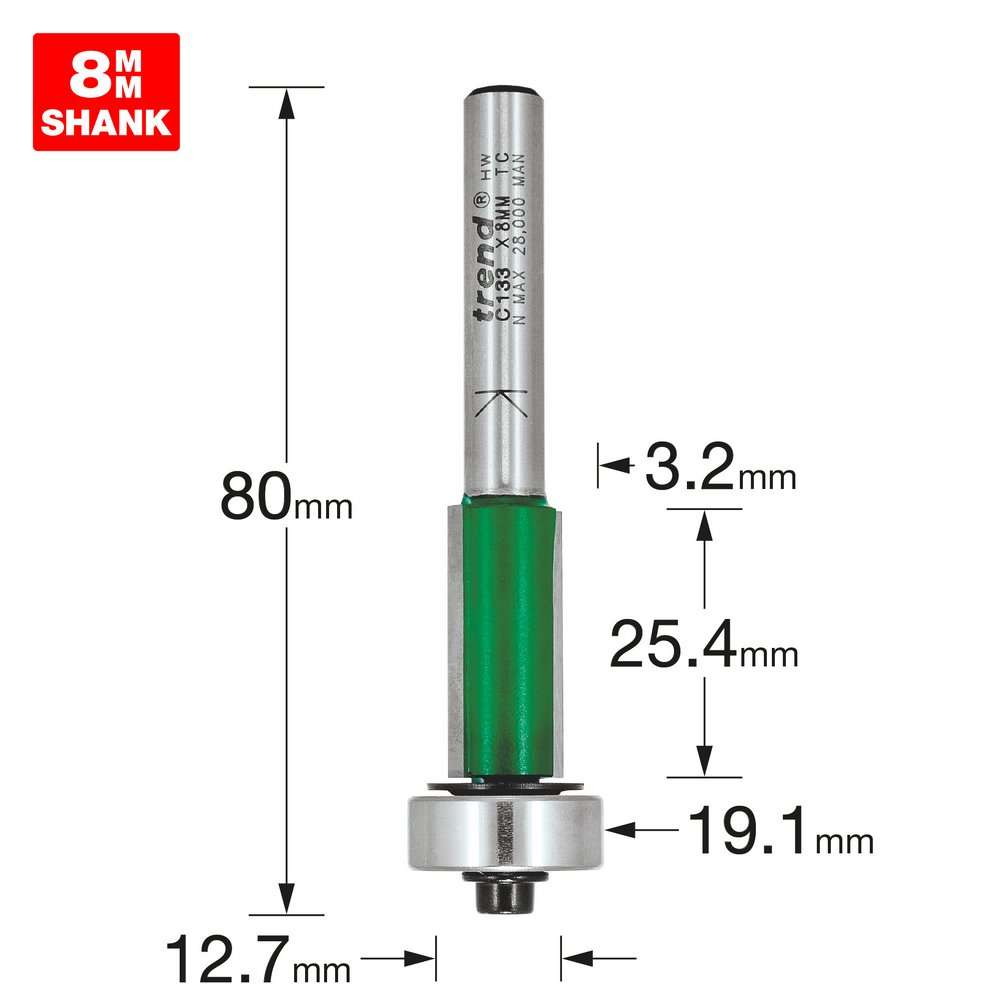 - Fræsitönn S8mm D12,7x25,4mm Með legu