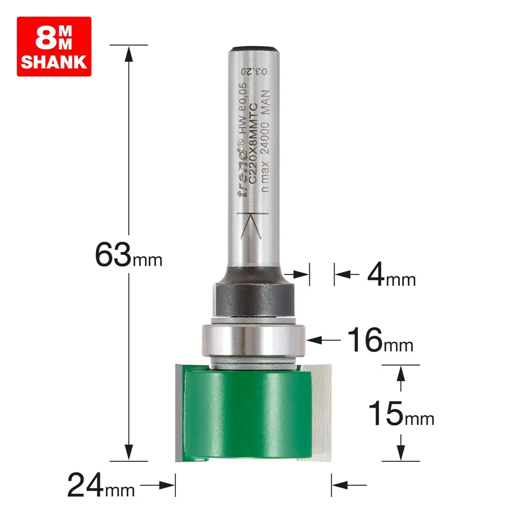 - Fræsitönn S8mm D24x15mm Með legu