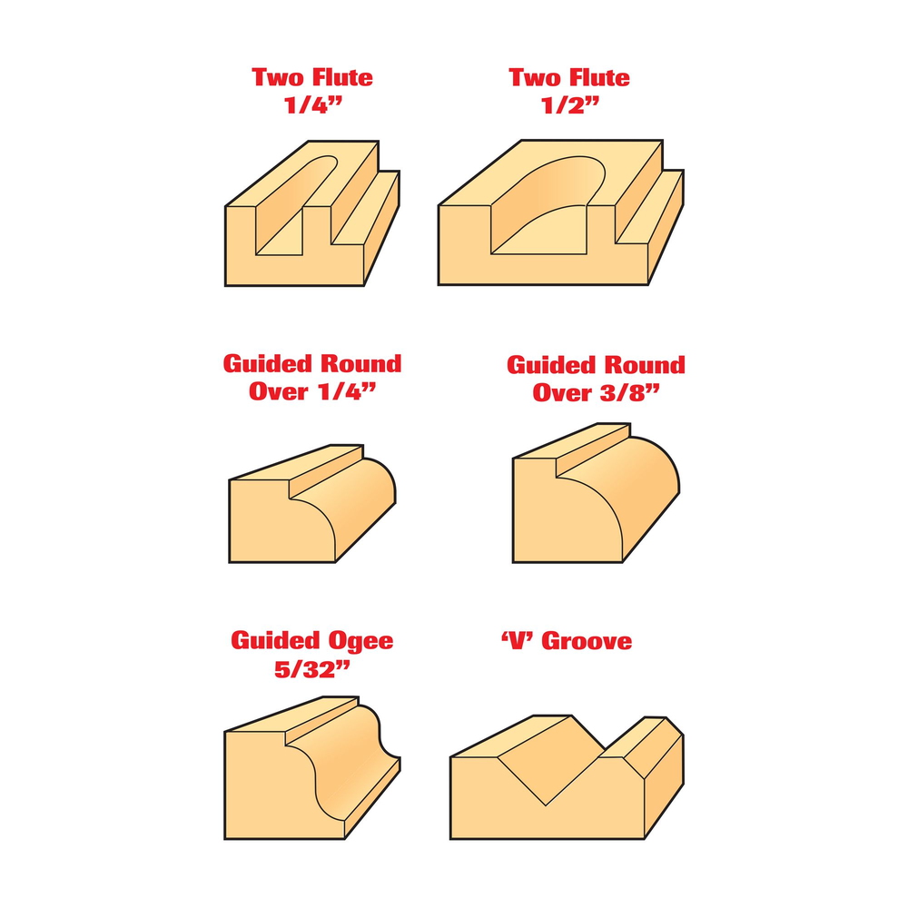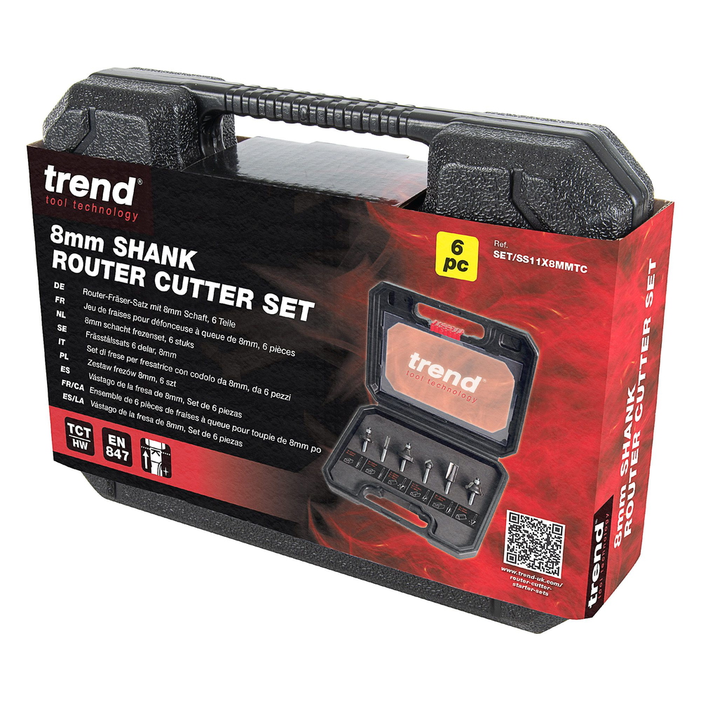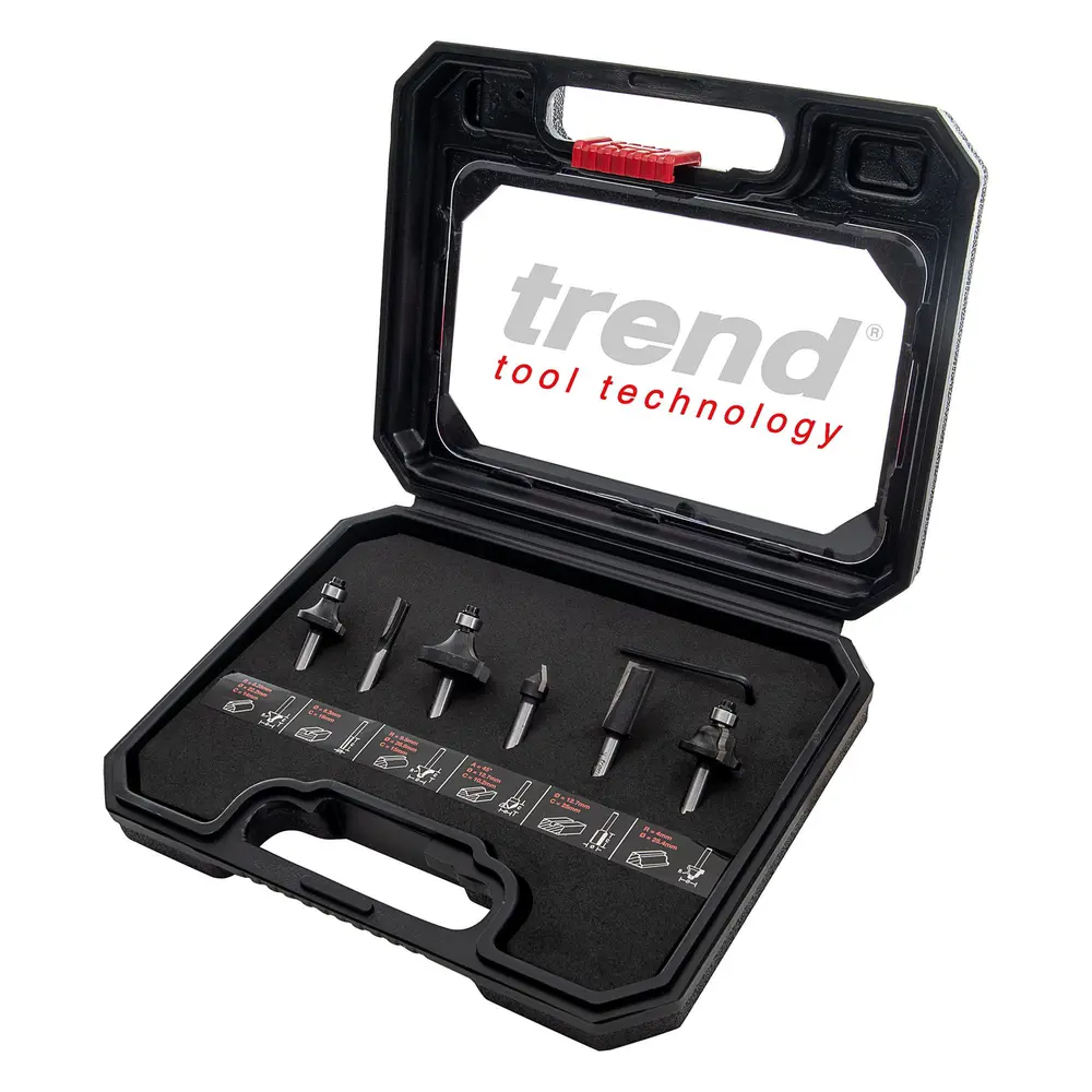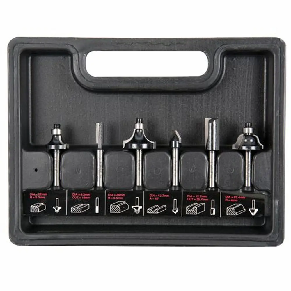 Innihald: 2 × beinar fræsitennur: 6,3 mm breidd, skurðdýpt 16 mm 12,7 mm breidd, skurðdýpt 25 mm 1 × 45° V-skeri, 12,7 mm breidd 2 × rúningsfræsitennur með legu: R6,3 mm radíus R9,5 mm radíus 1 × Roman Ogee fræsitönn með leiðbeinandi legu, R4 mm radíus Helstu eiginleikar: Skaft: 8 mm – passar í flesta minni og meðalstóra fræsara Skurðstál úr karbíti – endingargott og hentar fyrir fjölbreytt efni Geymt í sterkum, merktum plastkassa Hentar jafnt fyrir byrjendur sem vilja traustan grunnpakka sem og vanan iðnaðarmann sem þarf fjölnota sett við dagleg störf