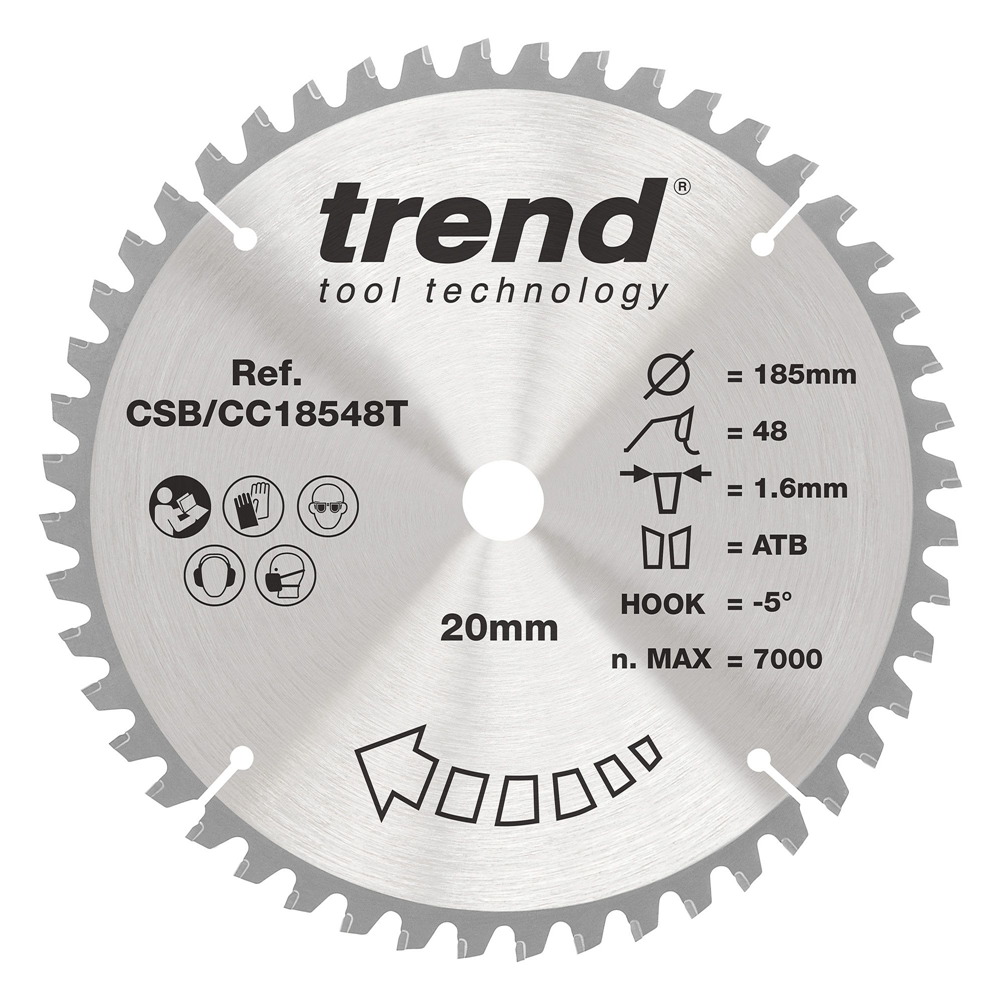 Trend CSB/CC18548Ter hágæða hjólsagarblað með 48 TCT-tönnunum, hannað fyrir fínan og nákvæman skurð í tré og plötuefni. Þunnt skurðspor (1,6 mm) dregur úr mótstöðu, sparar orku og lengir rafhlöðuendingu í rafhlöðuknúnum sögum. Hitadreifandi göt lágmarka titring og hitauppsöfnun þannig að blaðið heldur lögun sinni og skilar stöðugum skurði.