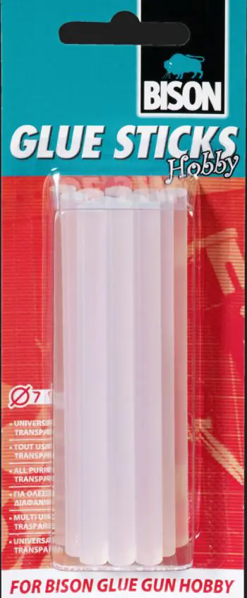 Bison Glue Sticks Hobby eru hágæða límstangir sem hannaðar eru til notkunar í litlar límbyssur sem styðja 7 mm þvermál. Þessar límstangir eru tilvaldar fyrir alla almenna föndurvinnu, skreytingar og viðgerðir þar sem þörf er á hraðri og öruggri festingu.