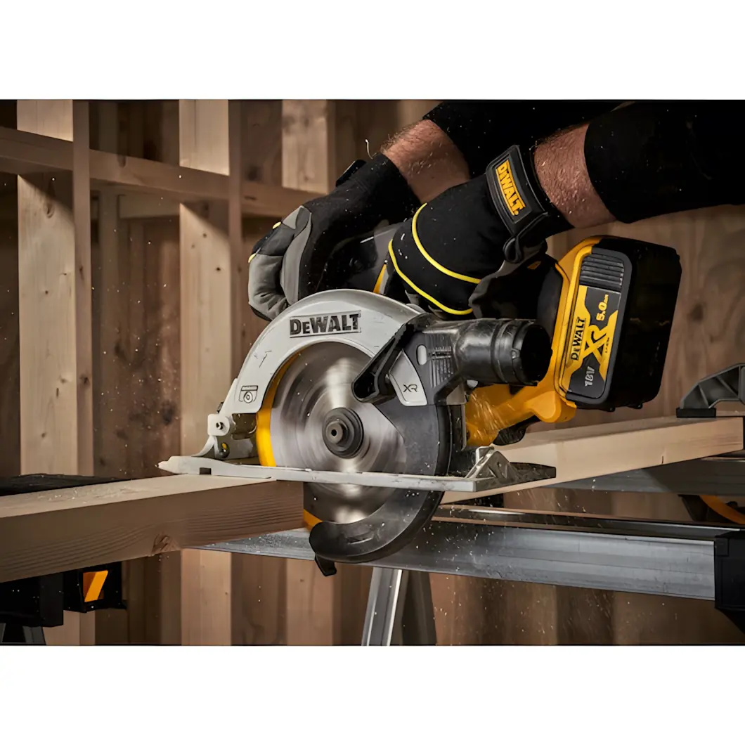 DeWalt DCS565N er fjölhæf og handhæg hjólsög sem er hönnuð til að takast á við krefjandi verkefni með nákvæmni og öryggi í fyrirrúmi. Hún er knúin af kolalausum mótor sem skilar 4.950 snúningum á mínútu, sem þýðir að hún heldur fullum afköstum lengur og þarf minna viðhald en hefðbundnar vélar.