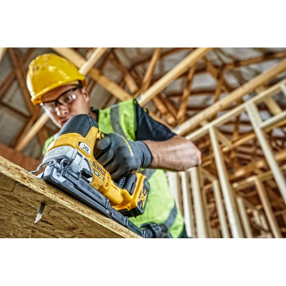 Helstu eiginleikar: Kolalaus mótor fyrir bætt ending og betra afköst 18 V XR rafhlöðatækni (aðeins sögin, engin rafhlaða) Breytileg hraðstilling (0–3.200 slag/mín) með getuinnifelldum læsingu fyrir öryggi Verkfæralaus sagablaðaskipti og lyftanlegur skór (bevel) sem snýr allt að 45° í báðar áttir Tæknilýsing: Lýsing Upplýsingar Slaglengd 26 mm Skurðardýpt (tré) 135 mm Skurðardýpt (ál) 25 mm Skurðardýpt (stál) 10 mm Þyngd 2,1 kg Hæfilegur skór (bevel) 0–45° Hljóðstyrkur (hámark) ca. 95 dB Til hvers er hún hentug? Þægileg í notkun – mjúkt grip, létt og gott jafnvægi. Stillanleg hraðastilling og sveiflubeygja henta mismunandi efna‑ og undirlagsþörf. Auðvelt að skipta um sagablöð og stilla til halli á staðnum. Stök vél án rafhlöðu og hleðslutækis